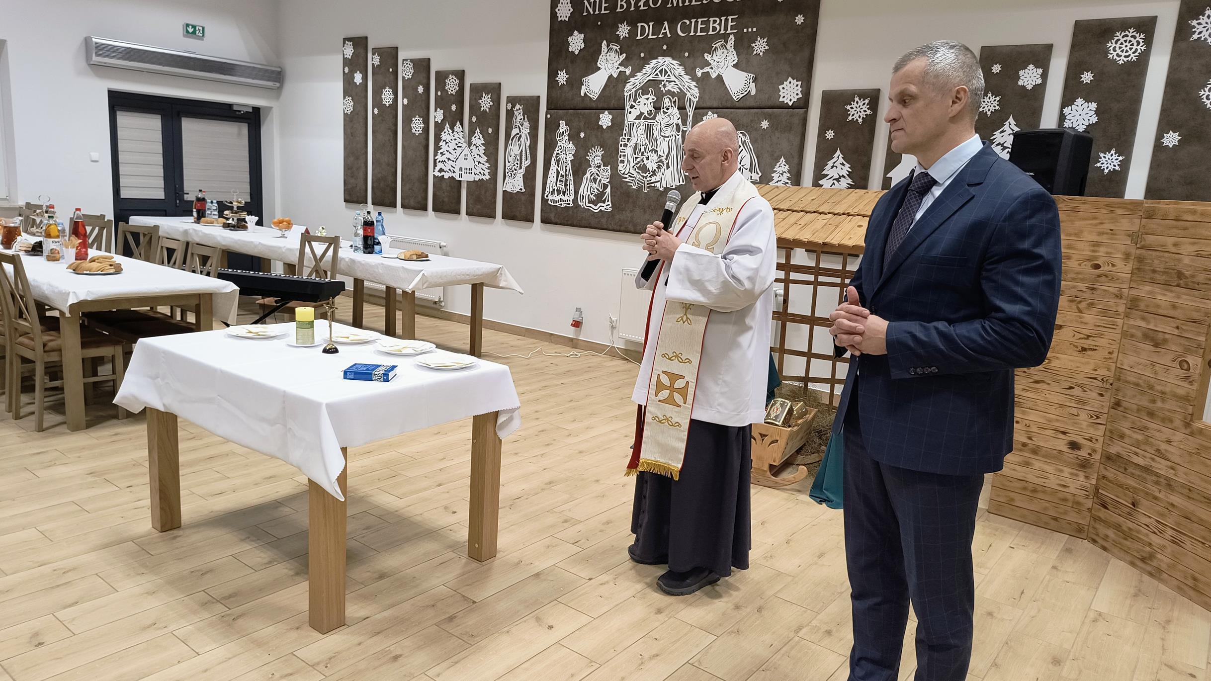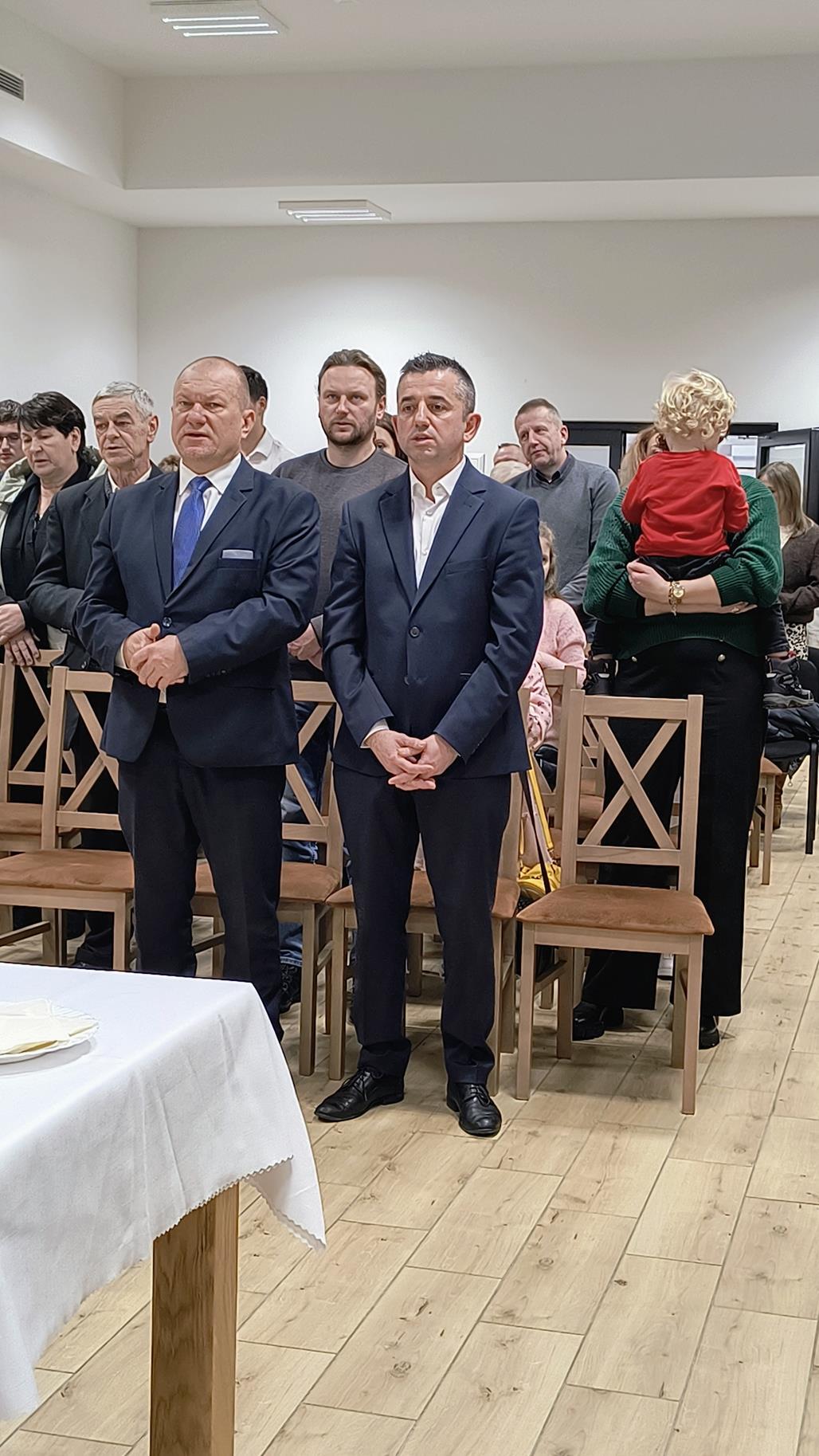 Po zakończeniu części artystycznej ks. Mariusz Rybiński poprowadził wspólną modlitwę, podkreślając znaczenie jedności, wzajemnego szacunku i życzliwości w życiu lokalnej społeczności. Następnie wszyscy uczestnicy podzielili się opłatkiem, składając sobie serdeczne życzenia zdrowia, pokoju oraz pomyślności w Nowym Roku.